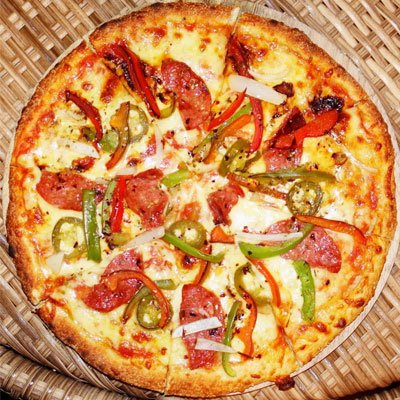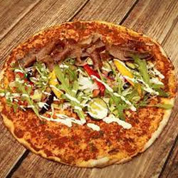 Tomatensoße & Zwiebeln & Paprika & Brokkoli & Champignons und Käse